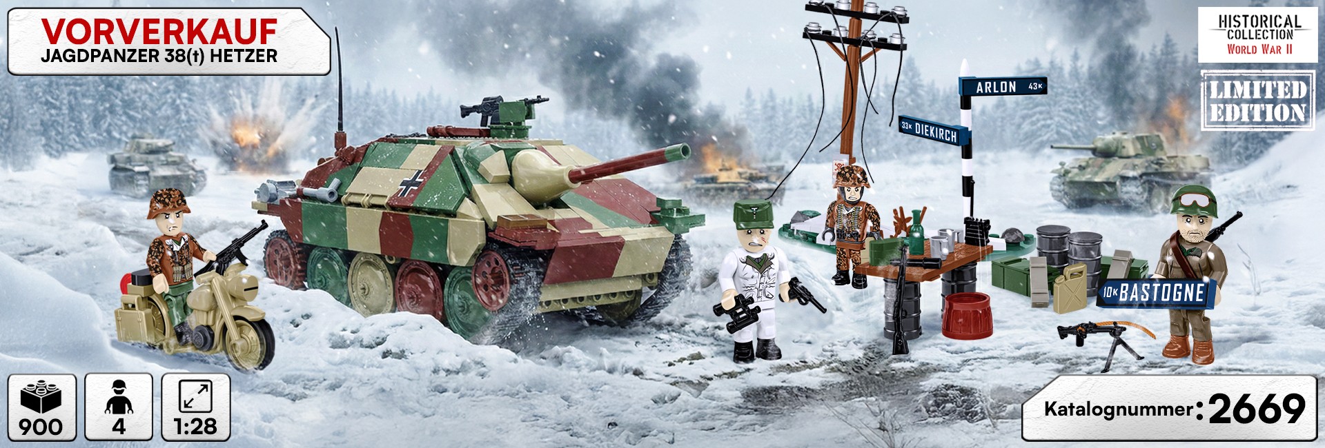 Unser Unternehmen stellt militärische Produkte her, die Repliken historischer Modelle sind. Wir distanzieren uns ausdrücklich von jeglicher Verherrlichung von Krieg. Die Modelle historischer Fahrzeuge, Schiffe, Flugzeuge und anderer Objekte, die wir anfertigen, werden mit größter Sorgfalt für eine detailgetreue Nachbildung erstellt. COBI tut dies im Interesse, Generationen von Menschen dazu zu inspirieren, sich für Geschichte zu interessieren und von ihr zu lernen.