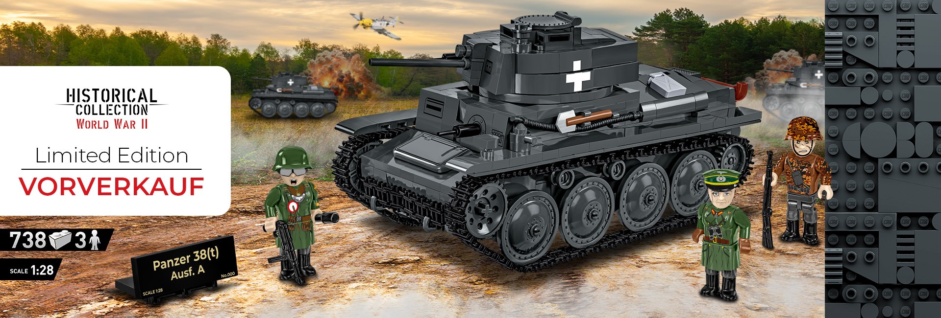 Unser Unternehmen stellt militärische Produkte her, die Repliken historischer Modelle sind. Wir distanzieren uns ausdrücklich von jeglicher Verherrlichung von Krieg. Die Modelle historischer Fahrzeuge, Schiffe, Flugzeuge und anderer Objekte, die wir anfertigen, werden mit größter Sorgfalt für eine detailgetreue Nachbildung erstellt. COBI tut dies im Interesse, Generationen von Menschen dazu zu inspirieren, sich für Geschichte zu interessieren und von ihr zu lernen.