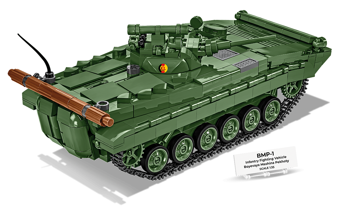 Dieses Modell aus Bausteinen ist ein Stück Realität des Kalten Krieges, das Sie bauen und Ihrer Sammlung hinzufügen können. Mit diesem Set können Sie den Schützenpanzer BWP-1 in zwei Varianten nachbauen: sowjetisch (UdSSR) und ostdeutsch (DDR). Das Set enthält eine Figur des Fahrzeugkommandanten und eine ansprechende, zweisprachige Plakette mit der Fahrzeugbezeichnung. Ein ideales Set für Militärhistoriker, Sammler von Ausrüstung aus der Zeit des Kalten Krieges und alle, die gerne mit COBI-Modellen bauen.