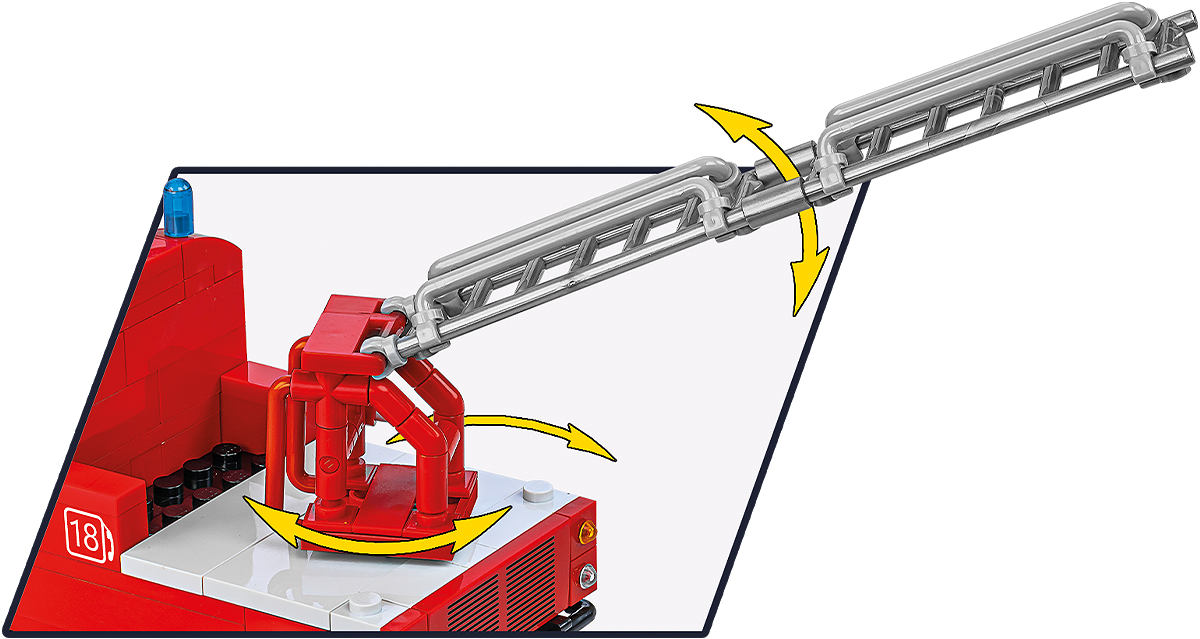 Bewegliche Elemente und Gummireifen – das Modell ist mit beweglichen Rädern mit Gummireifen und einer um 360 Grad drehbaren Feuerwehrleiter ausgestattet. Dies erhöht den Realismus und ermöglicht sowohl das Ausstellen als auch aktives Spielen, wodurch die Funktionalität eines echten Feuerwehrwagens originalgetreu nachgebildet wird.