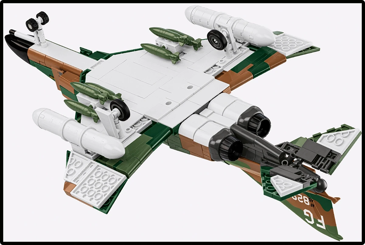 730 Teile – Die Steine sind mit viel Liebe zum Detail und Präzision gefertigt. Jedes Element trägt dazu bei, die charakteristischen Formen, Proportionen und einzigartigen Strukturdetails der F-4 Phantom II aus ihrem Einsatz in Vietnam originalgetreu wiederzugeben.