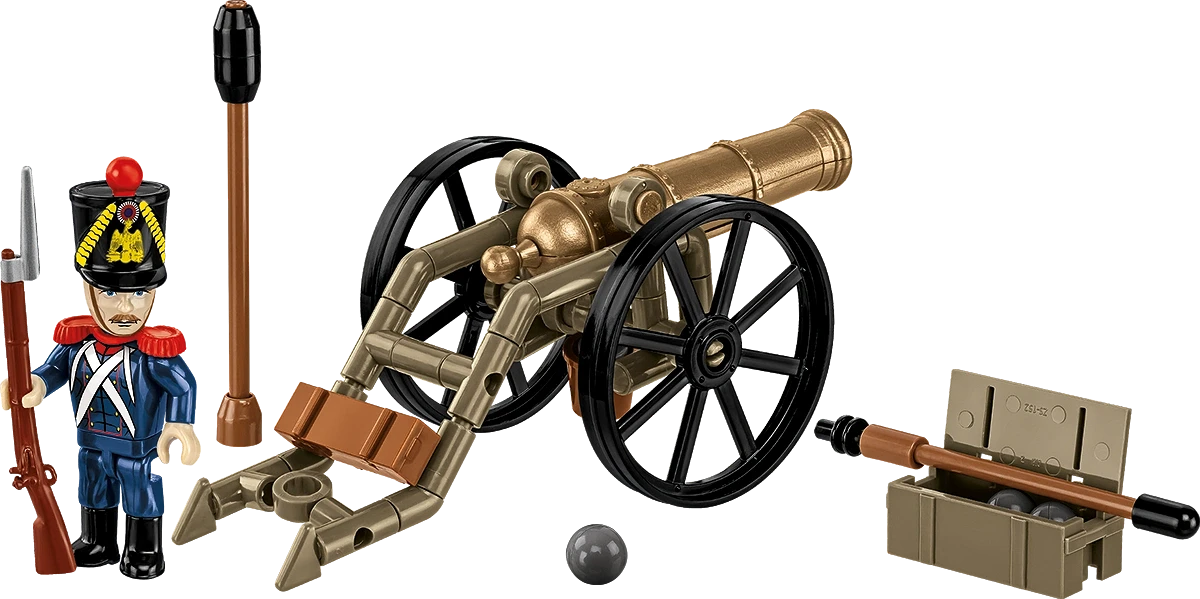 Kompakt und dennoch detailreich – das Set besteht aus 97 Teilen, die alle sorgfältig gestaltet wurden, um die Proportionen, die Form und die charakteristischen Merkmale einer Kanone aus den Napoleonischen Kriegen bestmöglich wiederzugeben.