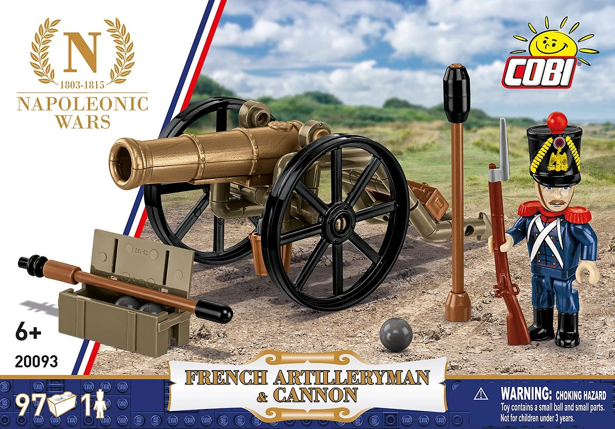 Die Artillerie war Napoleon Bonapartes ganzer Stolz, und das aus gutem Grund, denn er selbst begann seine militärische Laufbahn als Artillerieoffizier. Er behauptete: „Artillerie gewinnt die Schlacht“, und sein Ansatz revolutionierte den Einsatz von Kanonen auf dem Schlachtfeld. Die französische Artillerie verwendete Ausrüstung nach dem Gribeauval-System, das in den 1770er Jahren eingeführt wurde. Dazu gehörten 4-, 8- und 12-Pfünder-Kanonen sowie 6-Zoll-Haubitzen. 12-Pfünder-Kanonen, wie die in diesem COBI Set enthaltene, bildeten das Rückgrat der Feuerkraft in der Hauptkampflinie. Unterstützt von ausgebildeten Kanonieren konnten diese Kanonen Schlachten entscheiden, noch bevor die Infanterie aufeinanderprallte.