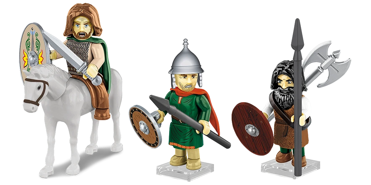 Begib dich in die wilden Wälder Germaniens, wo Mut und Wut stärker sind als römische Legionen! Mit dem Germanische Krieger-Set aus der IMPERIUM ROMANUM-Reihe von COBI kannst du epische Auseinandersetzungen zwischen germanischen Kriegern und der römischen Armee nachstellen.