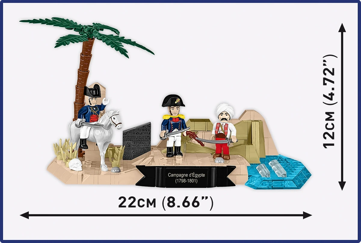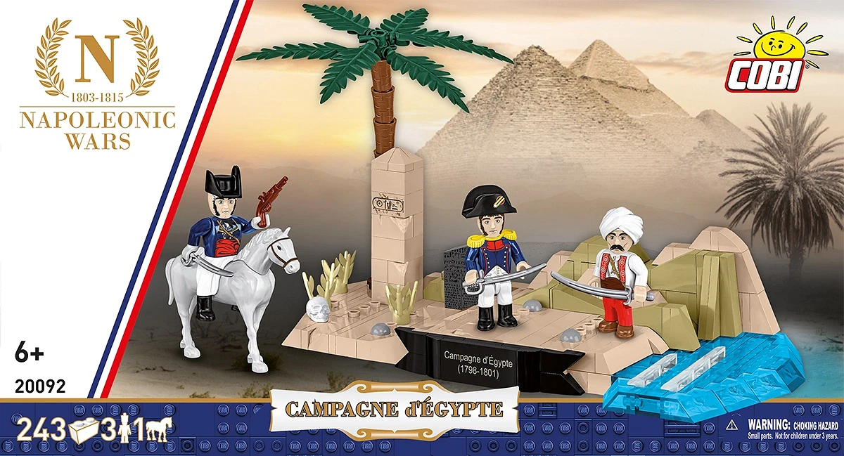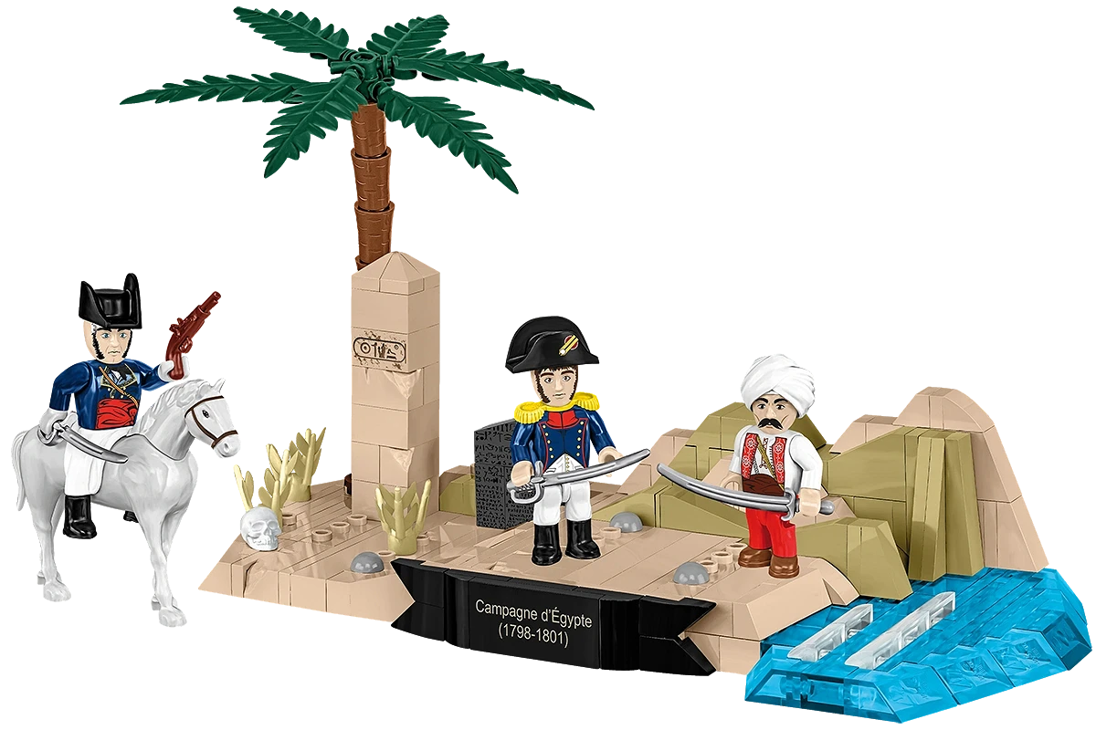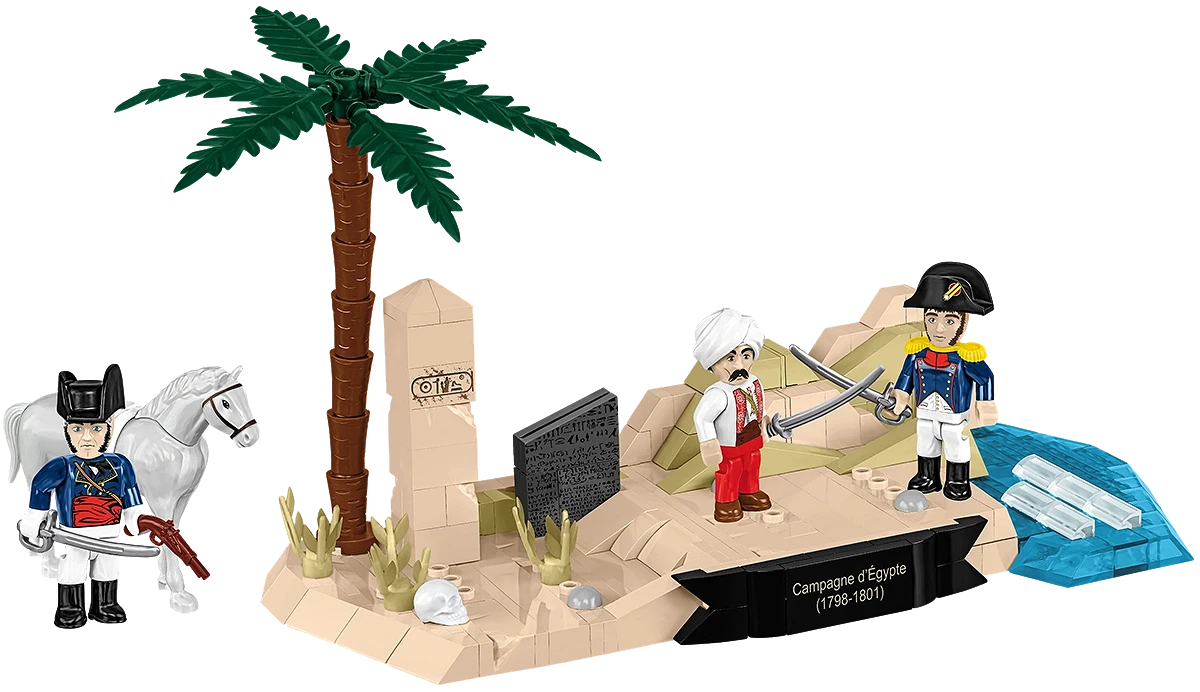 Obwohl Napoleon Bonaparte hauptsächlich mit Feldzügen in Europa in Verbindung gebracht wird, fand seine exotischste und faszinierendste Expedition weit jenseits des alten Kontinents statt, am Ufer des Nils, im Schatten der Pyramiden. Dank des Sets „Ägyptenfeldzug 1798–1801“ von COBI kannst du nun eine der unerwartetsten Episoden der französischen Geschichte und der gesamten Napoleonischen Ära nachstellen: den Ägyptenfeldzug. Baue ein historisches Diorama aus der Zeit, als Bonapartes Armee nicht nur kämpfte, sondern auch das Erbe des alten Ägypten erforschte, entdeckte und dokumentierte. Schließe dich den Entdeckern des geheimnisvollen Steins von Rosetta an und erlebe diese außergewöhnliche Expedition hautnah!