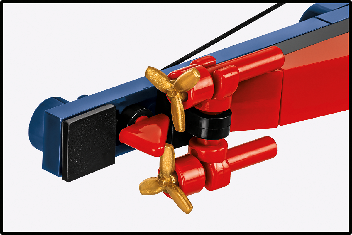 Bewegliche Ruder und Propeller – Das Modell verfügt über bewegliche Elemente, die den Realismus des Designs erhöhen.
