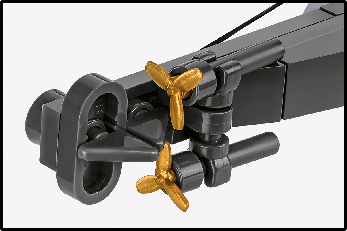 Bewegliche Steuerelemente und Propeller erhöhen den Realismus des Modells und ermöglichen die Darstellung dynamischer Unterwasserpatrouillen.