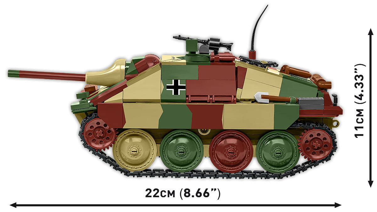 • Jagdpanzer im Maßstab 1:28 – Das Set enthält ein großes und detailliertes Modell des Jagdpanzer 38(t) Hetzer auf beweglichen Ketten mit montiertem MG 34. Das Modell eignet sich perfekt zum Spielen und Ausstellen. Die einzigartige Dreifarben-Tarnung unterscheidet es von der Standardausgabe.