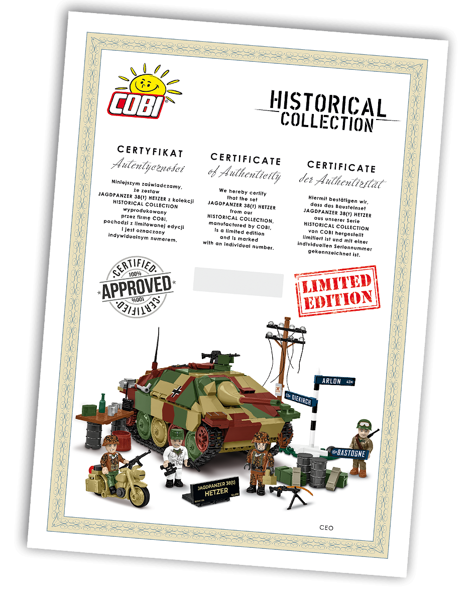 Echtheitszertifikat – Individuell nummeriertes Dokument, gedruckt auf exklusivem Papier und vom CEO von COBI unterzeichnet.