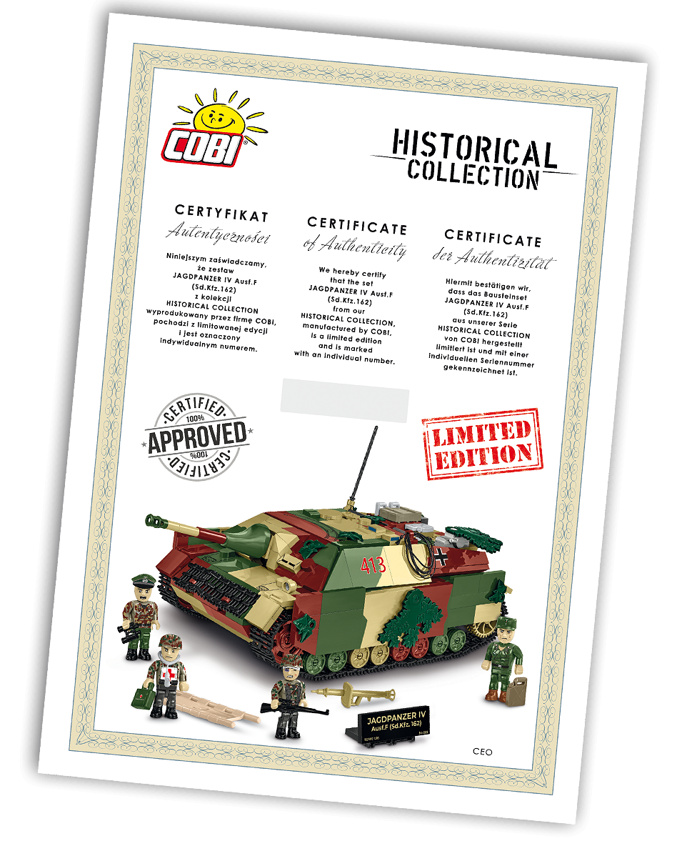 Echtheitszertifikat – individuell nummeriertes Dokument, gedruckt auf exklusivem Papier und handsigniert vom CEO von COBI.