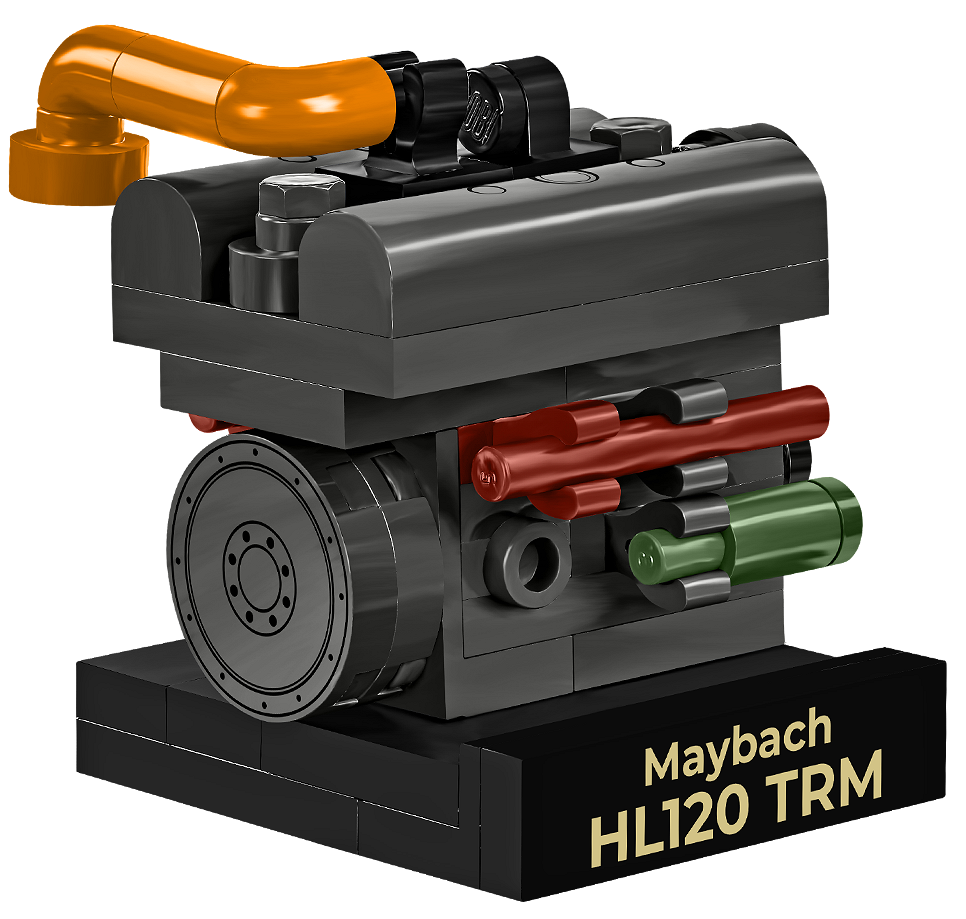 Ausbaubarer Motor – Unter der abnehmbaren Wartungsklappe befindet sich der Motorraum mit dem Maybach HL120 TRM-Motor. Der Motor kann ausgebaut und auf einem Ständer mit Motorbezeichnung platziert werden.