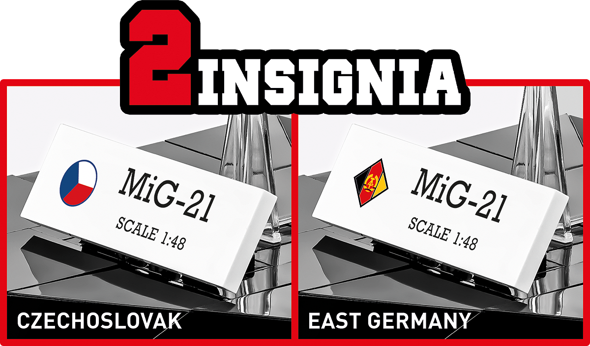 Auswahl zwischen tschechischen und ostdeutschen Markierungen – Mit diesem Modell kannst du ein Flugzeug mit tschechoslowakischen oder DDR-Markierungen bauen. Alle Markierungen, taktischen Nummern und Hoheitsabzeichen sind als haltbare Drucke ausgeführt, ohne Aufkleber, was den Sammlerwert deutlich erhöht.