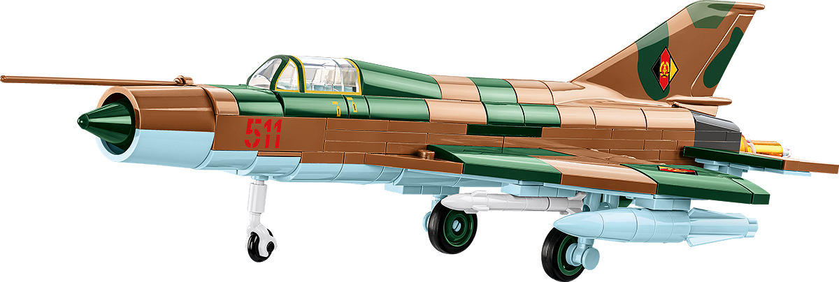 Modell im Maßstab 1:48 – Das Set besteht aus 396 präzise gestalteten Teilen, die die charakteristische Silhouette der MiG-21 originalgetreu wiedergeben: vom Lufteinlass und den Deltaflügeln bis hin zu Bewaffnung und Fahrwerksdetails.