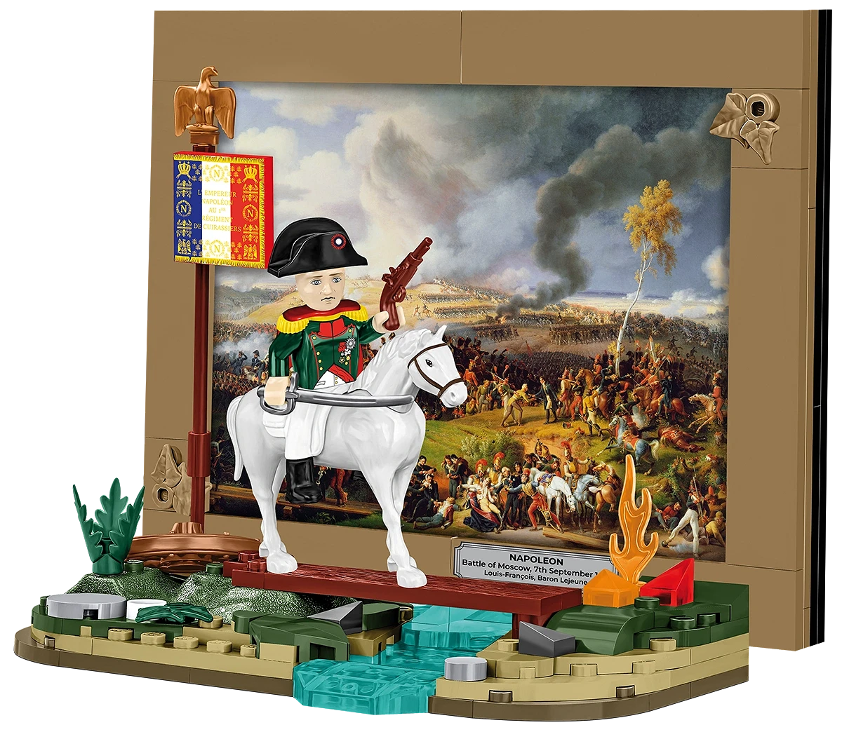 Mini-Diorama mit einem gedruckten Bild der Schlacht um Moskau – das Set enthält einen realistisch nachgebildeten Hintergrund mit einer Reproduktion eines Gemäldes, das eine Szene aus der Schlacht von Borodino darstellt. Es handelt sich um ein Gemälde von Louis-François Lejeune, der als Adjutant von Marschall Berthier direkt an dieser Schlacht teilnahm. Der Detailreichtum und die Tatsache, dass das Werk von einem direkten Augenzeugen der dargestellten Ereignisse gemalt wurde, erhöhen seinen historischen Wert und waren die wichtigsten Gründe für die Wahl dieses Gemäldes als Hintergrund für das Diorama.