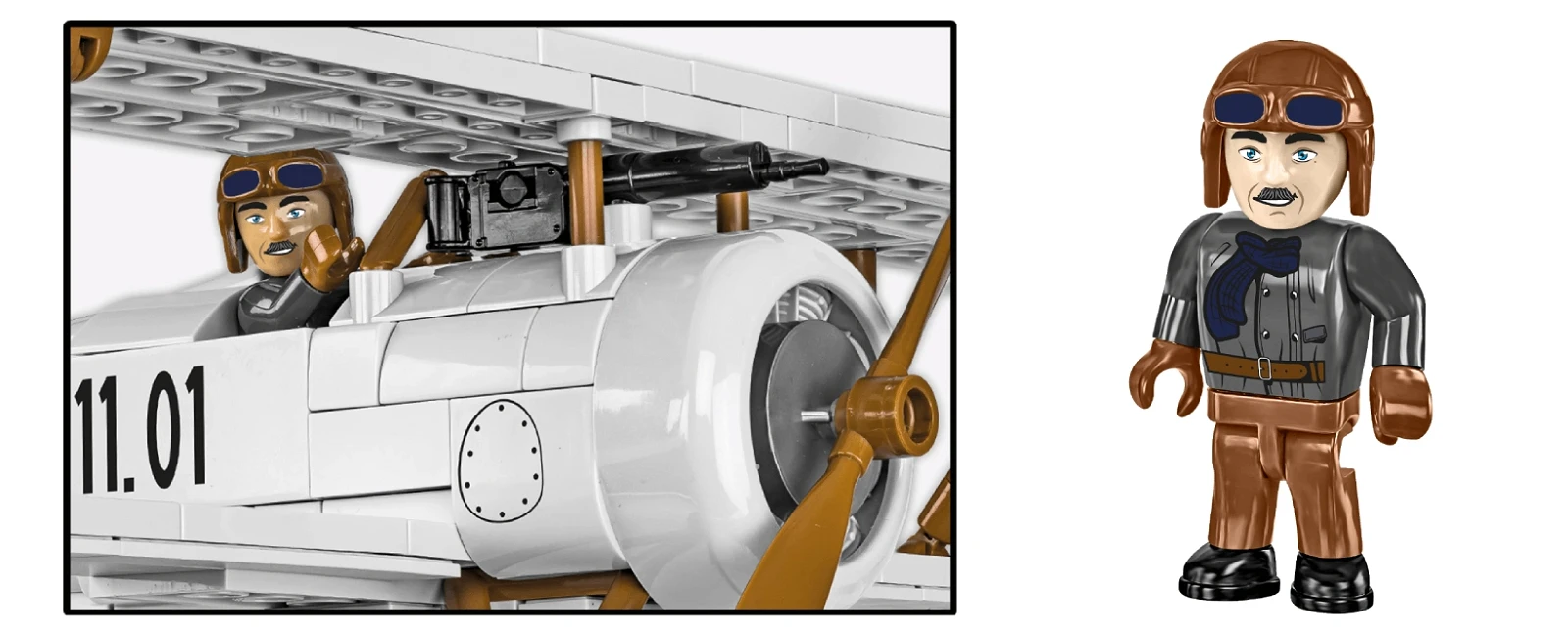 Pilotenfigur – Ein Pilot in polnischer Uniform der damaligen Zeit verleiht Ihrem Set eine besondere Note. Bauen Sie die Figur zusammen, bereiten Sie den Piloten auf den Flug vor und setzen Sie ihn ins Flugzeug, um zu einem Einsatz aufzubrechen.