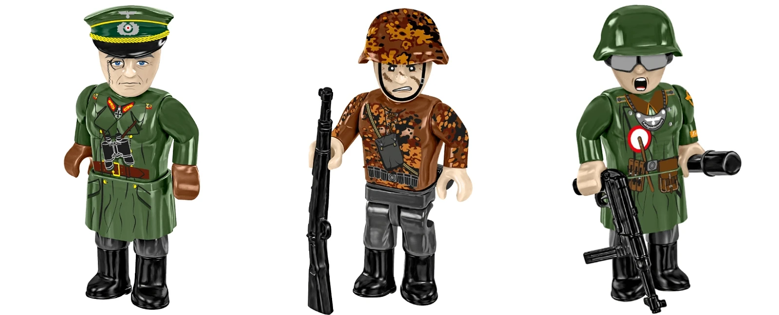 • Panzergrenadier – mit zahlreichen Aufdrucken, die das Tarnmuster nachbilden, das auch zu Beginn des Krieges verwendet wurde. Die Figur ergänzt die Sammlung der Grenadiere, die in vielen limitierten COBI-Editionen erschienen sind.