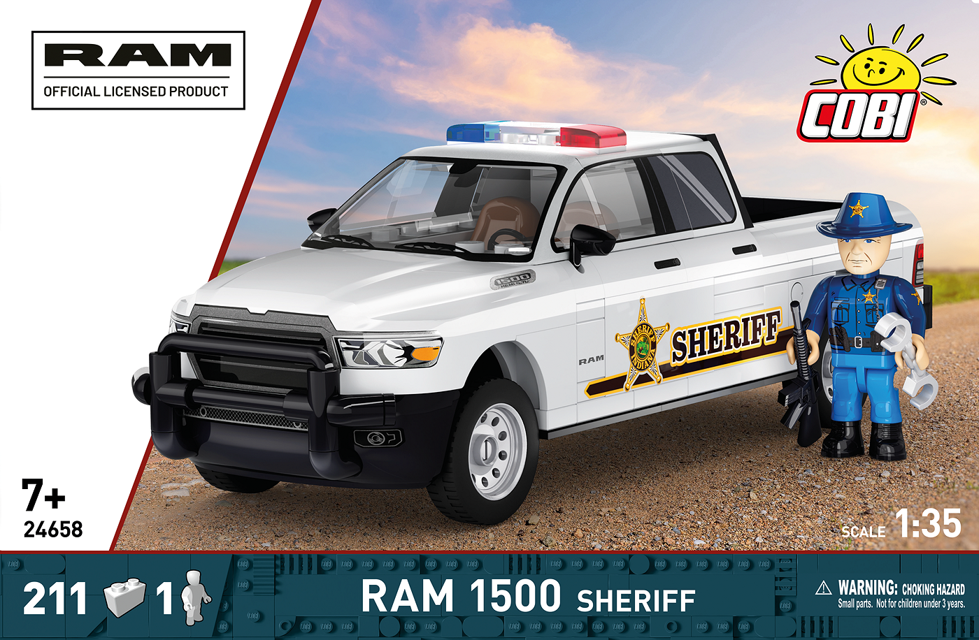 Der RAM 1500 HEMI Sheriff, ein kraftvoller Pickup-Truck, der seit Jahrzehnten die endlosen Straßen der USA patrouilliert, ist jetzt als Sammleredition von COBI erhältlich!
