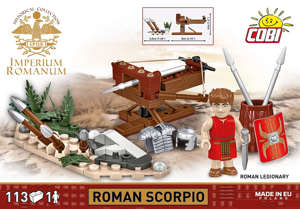 Mini-Diorama und weiteres Zubehör – Zusätzlich enthält der Skorpion ein Mini-Diorama, einen römischen Legionär und ein Lauf für Speere. All dieses Zubehör macht das Set sowohl zum Spielen als auch als Ausstellungsstück in größeren Szenen und Dioramen attraktiv.