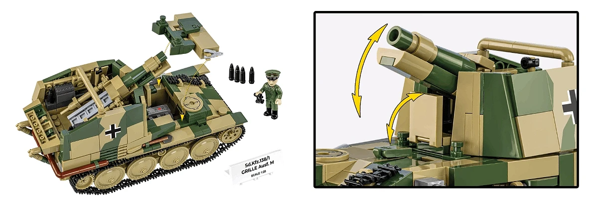 Das COBI Grille Ausf. M Modell ist eine detailgetreue Nachbildung einer deutschen Selbstfahrlafette im Maßstab 1:28, gefertigt aus hochwertigen Steinen, die präzise und langlebig zusammenpassen. Das Set bietet mehr als nur Spielspaß. Es ermöglicht die Entdeckung von Geschichte durch Bauen!