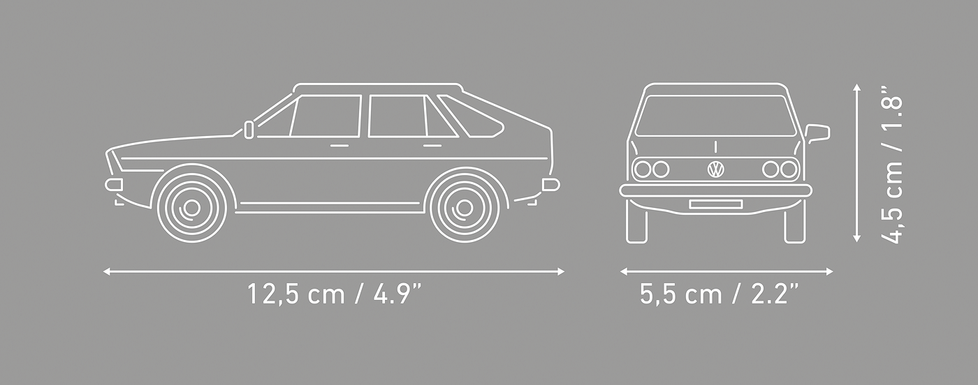 Perfekte Nachbildung der Silhouette der Passat B1 Schrägheck-Limousine – das Modell fängt die charakteristischen Linien des ersten Passat perfekt ein: eine schlichte, elegante Motorhaube, die klassische Dreikastenform und ein deutlich akzentuiertes Heck mit dem charakteristischen Kofferraumdeckel. Jedes Element wurde mit Blick auf Realismus und die Geschichte des Automobils gestaltet.